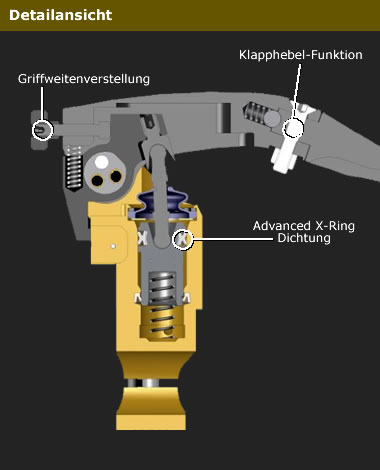 3-fach einstellbare Hebellagerung (entspricht +/- 1mm hydraulische Veränderung)