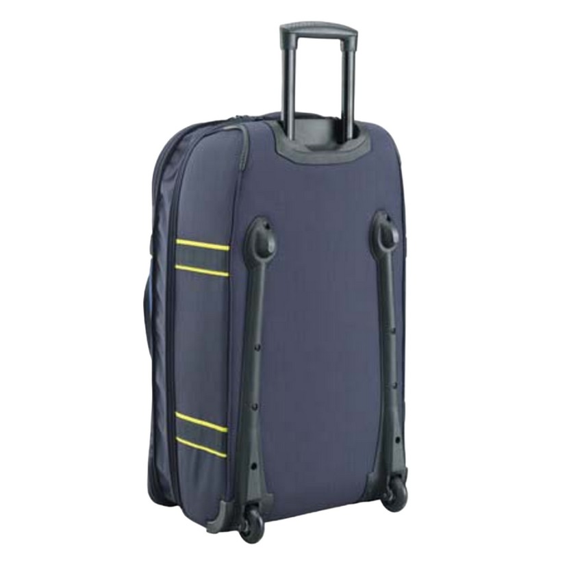 Rollen und mehrere Griffe. Verstärkte Rückenplatte. Kompressionsbänder innen. Mehrere Griffe und 7,5-cm-Reißverschluss zur Vergrößerung der Tasche. Ausziehbarer Teleskop-Ziehgriff. Zwei Außentaschen mit niedrigem Profil. Trennnetz innen. 100 % Polyeste.
